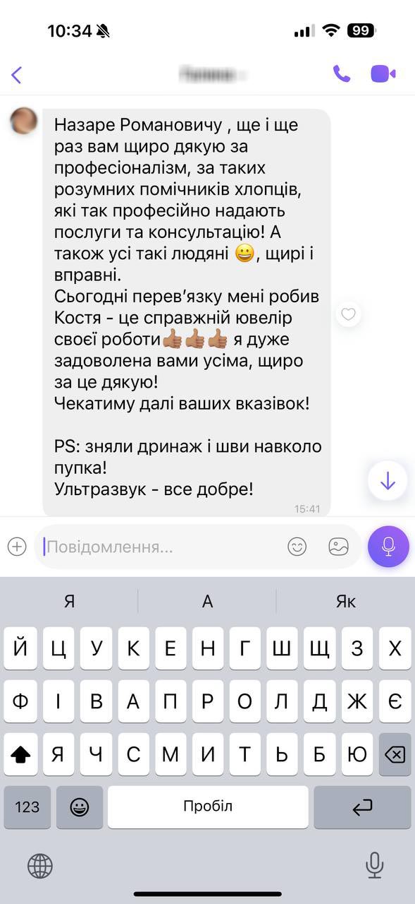Хочу подякувати хірургу за операцію на очі. Тепер маю відкритий погляд, Від спілкування з лікарем залишились тільки найкращі враження: уважний до деталей, турботливий та чуйний. Рекомендую