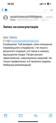 Все данные поступают на электронный ящик врача. Как только будет готов фотопрогноз операции – врач свяжется с вами!
